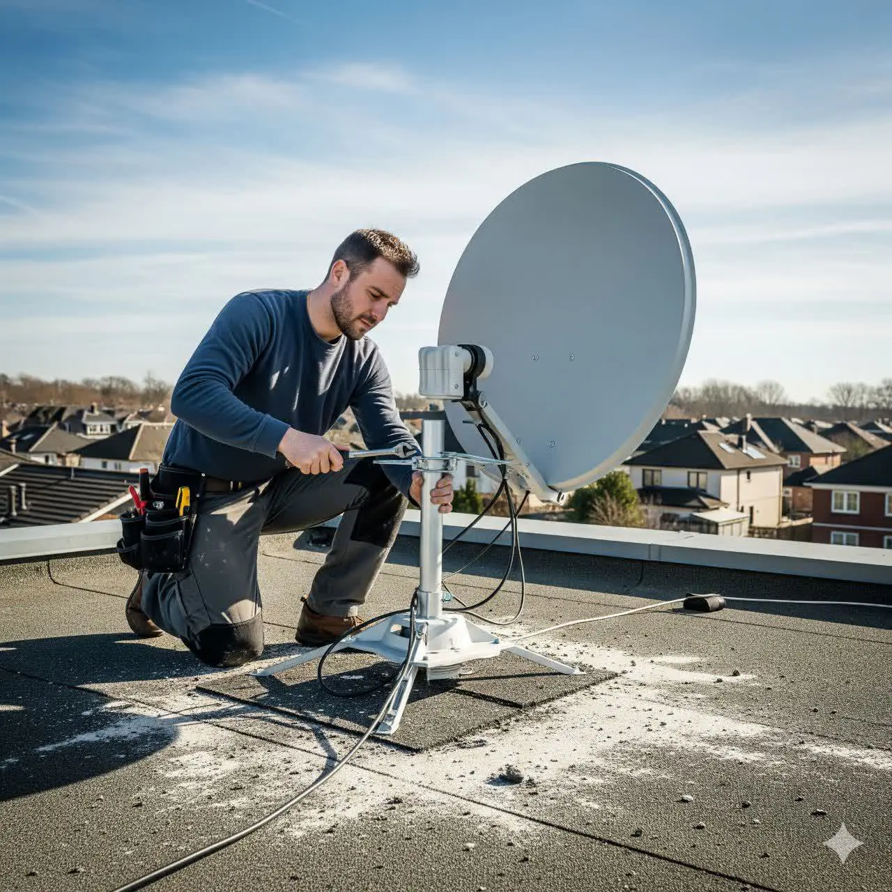 انتخاب مکان مناسب برای آنتن: پشت‌بام باید صاف و بدون موانع باشد تا سیگنال کامل دریافت شود
