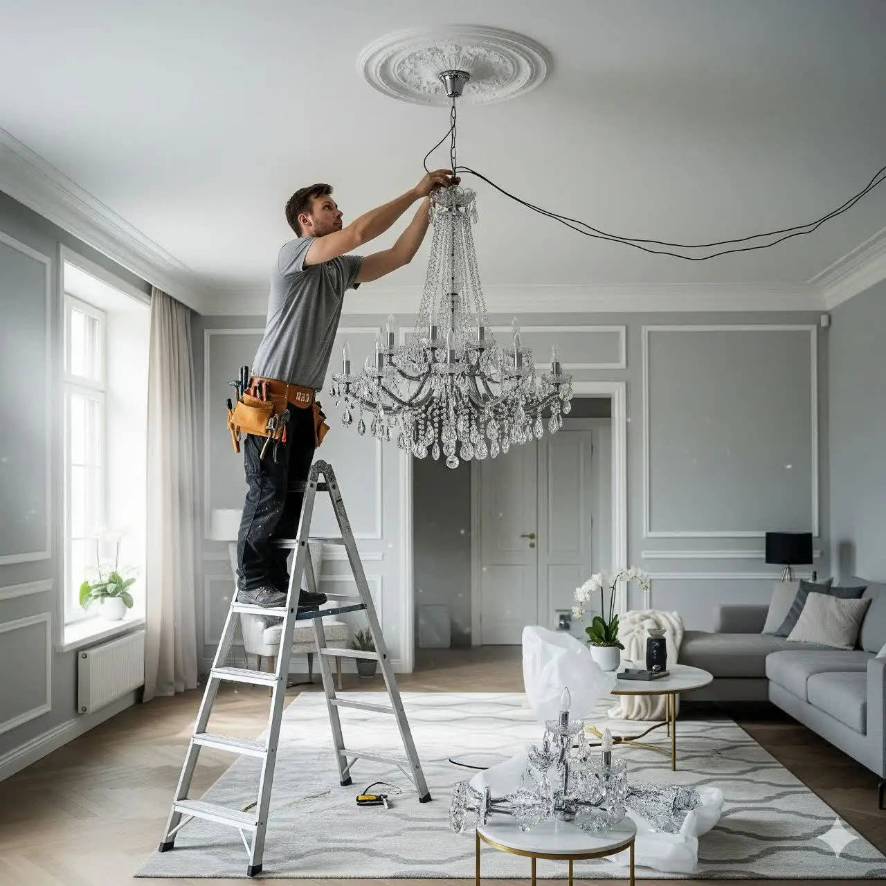 ۵. نصب لوستر کریستالی یا برنزی سنگین را چگونه انجام میدهید؟